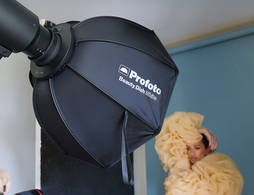 Der Profoto Softlight Reflektor, auch Beauty Dish genannt, liefert ein weiches und gerichtetes Licht. Die Softlight Reflektoren sind in weiss und silber erhältlich und überzeugen besonders in der Porträt- und Beautyfotografie. Im Vergleich zur Softbox zeigt der Softlight Reflektor seine besondere Lichtqualität vor allem bei kurzer Distanz zum Motiv.